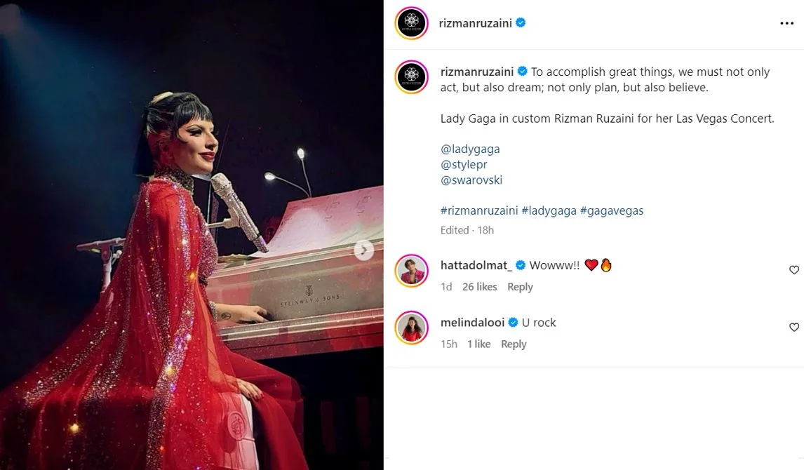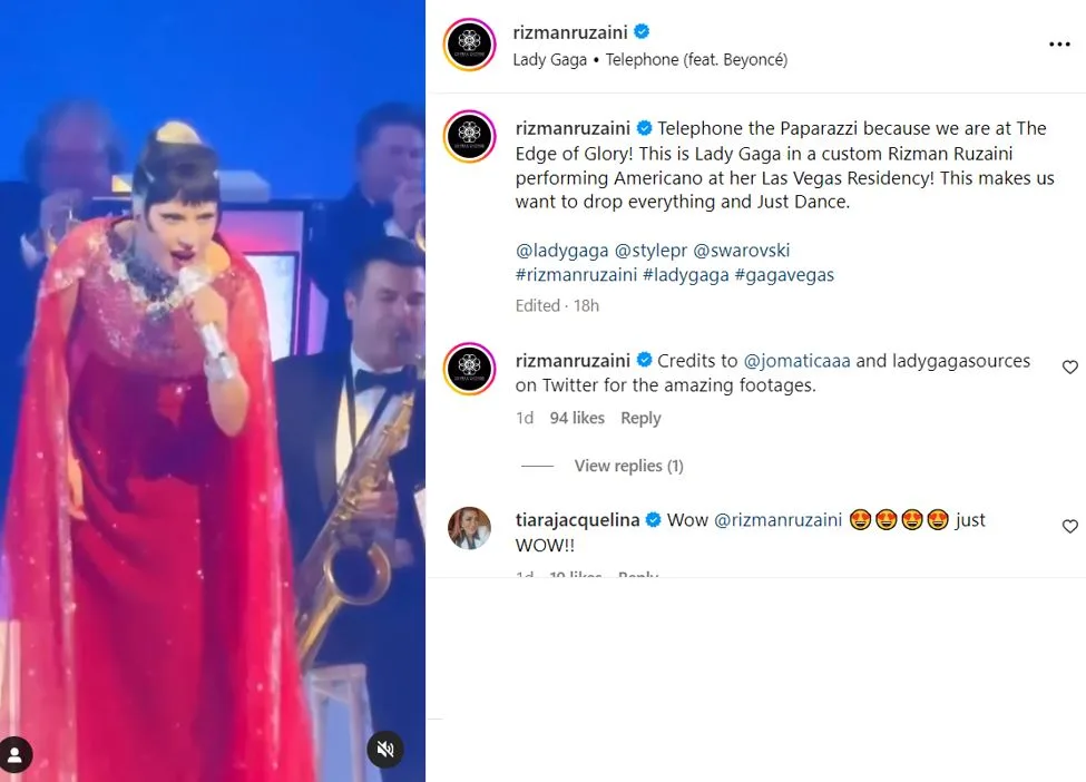 Baru – baru ini, tular di laman sosial mengenai busana rekaan Rizman Ruzaini yang digayakan oleh penyanyi antarabangsa, Lady Gaga.