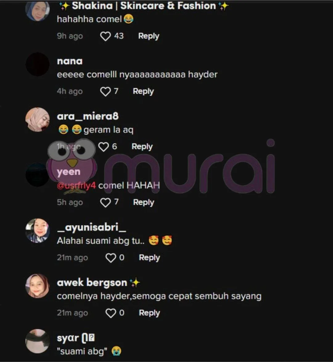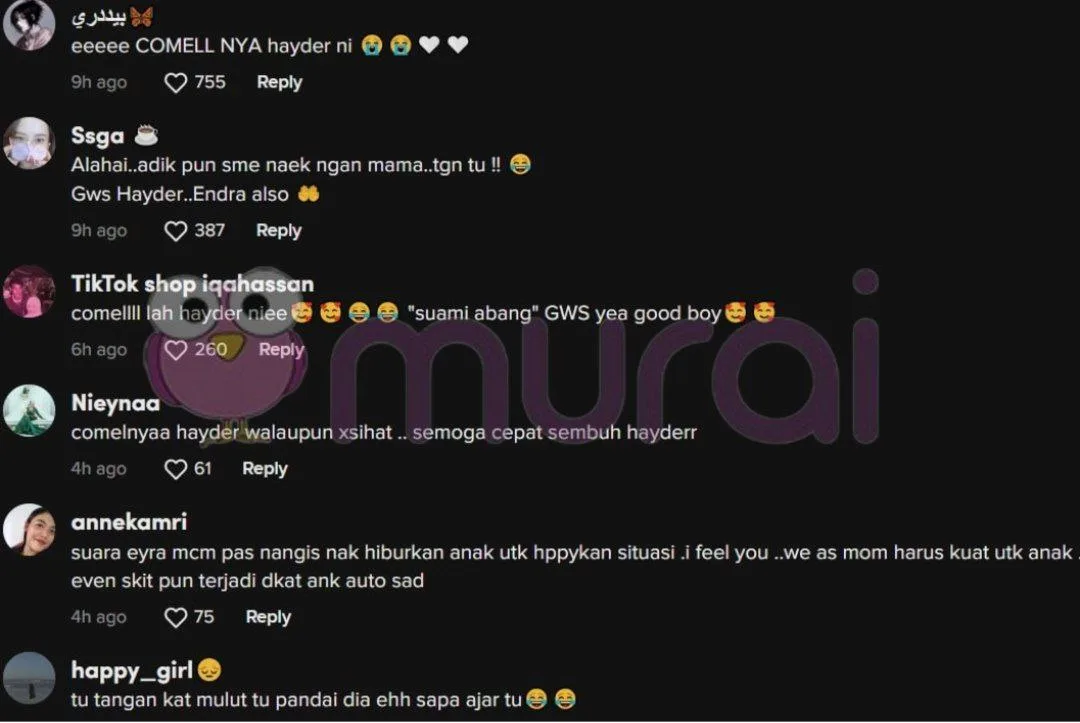 Hasil tinjaun Murai MY keruangan komen posting tersebut, ramai yang menitipkan doa supaya Hayder dan adiknya cepat sembuh. Ada juga yang memuji dengan kecomelan Hayder di dalam video tersebut.