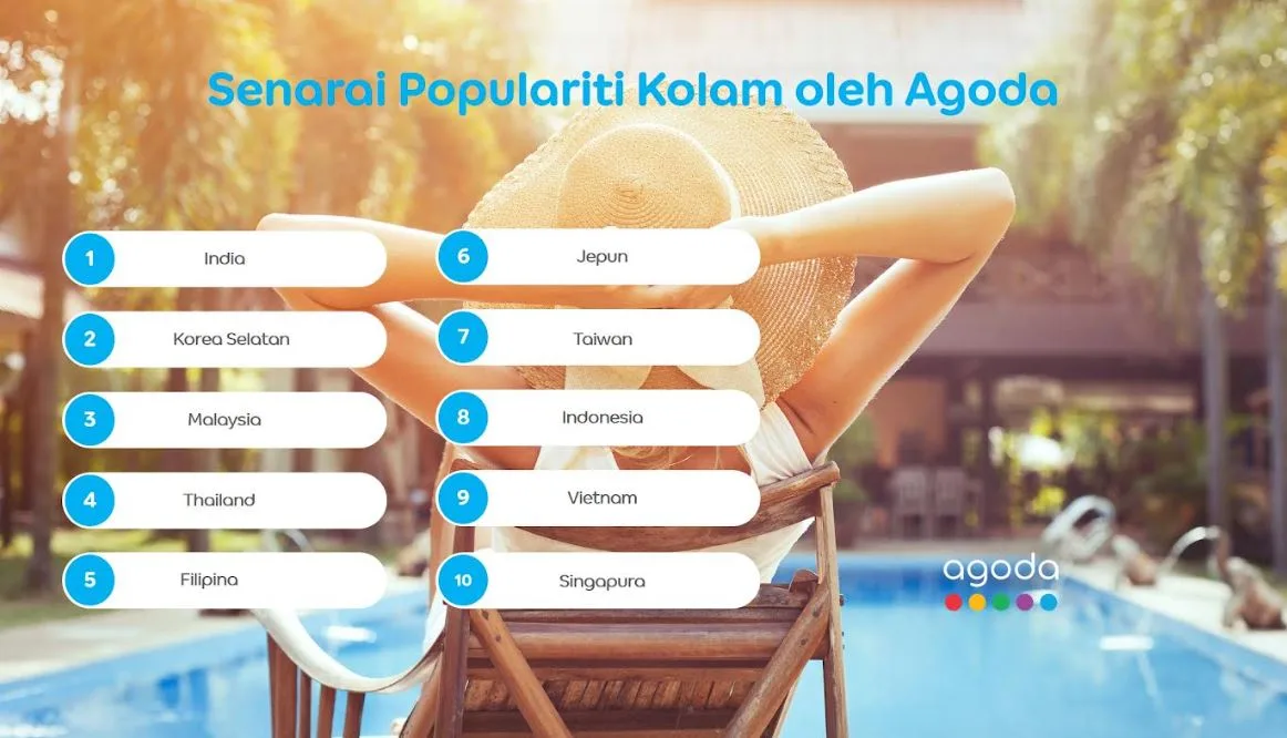 Dengan bahang cuaca panas yang menjadi topik perbualan di seluruh Asia tahun ini, Agoda telah mengumumkan Senarai Populariti Kolam, menampilkan pelancong Asia yang cenderung untuk menempah penginapan dengan kemudahan kolam renang.