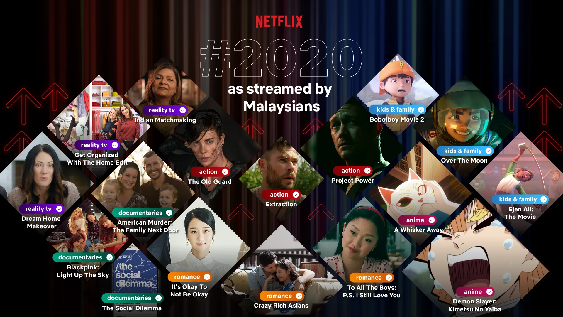 Sepanjang 2020, ramai yang mengambil pendekatan untuk duduk mahupun bekerja dari rumah bagi mencegah jangkitan wabak ini dan ketika itulah laman penstriman Netflix menjadi pilihan ramai untuk mengisi masa lapang mereka. Menerusi sebuah kenyataan Netflix telah senaraikan tontonan paling popular yang menjadi pilihan rakyat Malaysia sepanjang 2020.