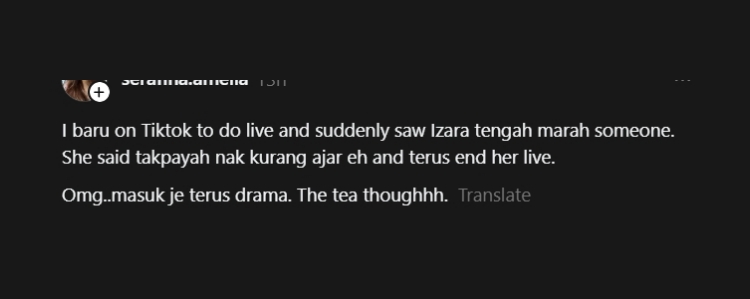 Pelakon dan usahawan, Izara Aishah baru-baru ini meluahkan rasa marahnya selepas berlakunya insiden yang kurang menyenangkan semasa melakukan siaran langsung di TikTok.