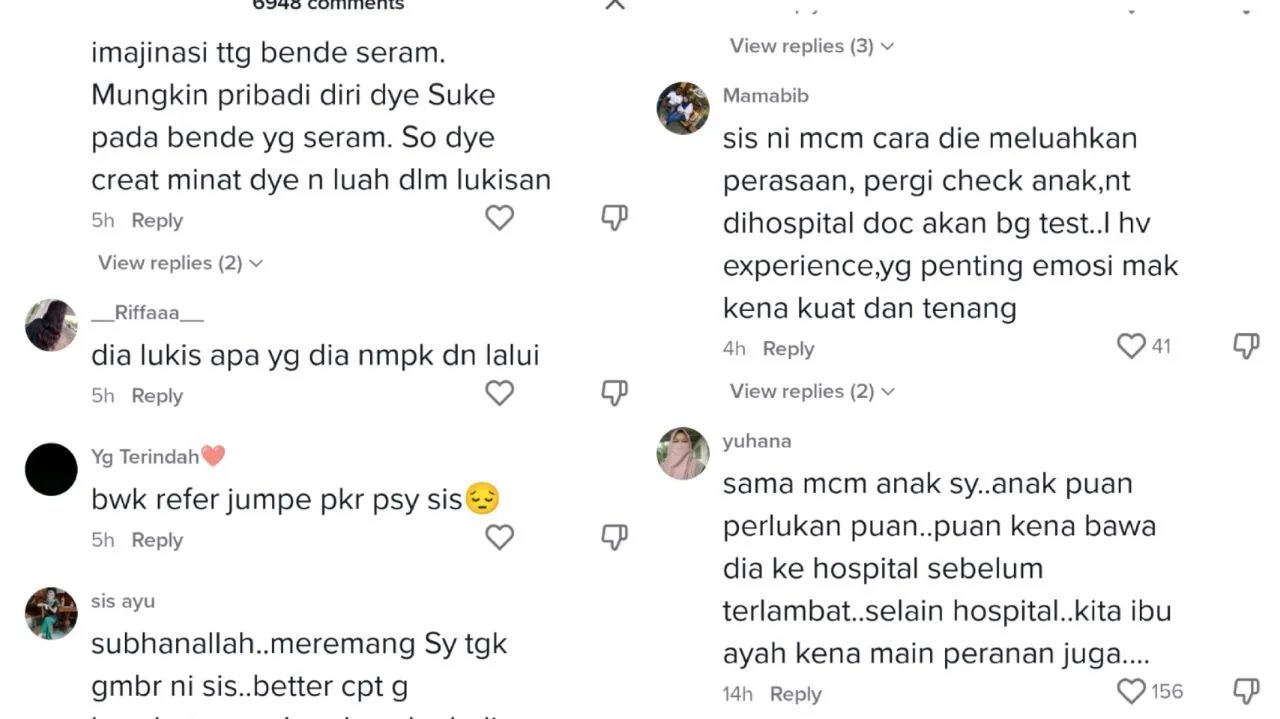 Hasil tinjauan Murai MY ke ruangan komen video tersebut, ramai yang menyarankan dan menasihati dia untuk membawa anaknya untuk rujuk ke hospital. Ada juga yang mengatakan lukisan anaknya merupakan lukisan yang berunsurkan masalah mental.