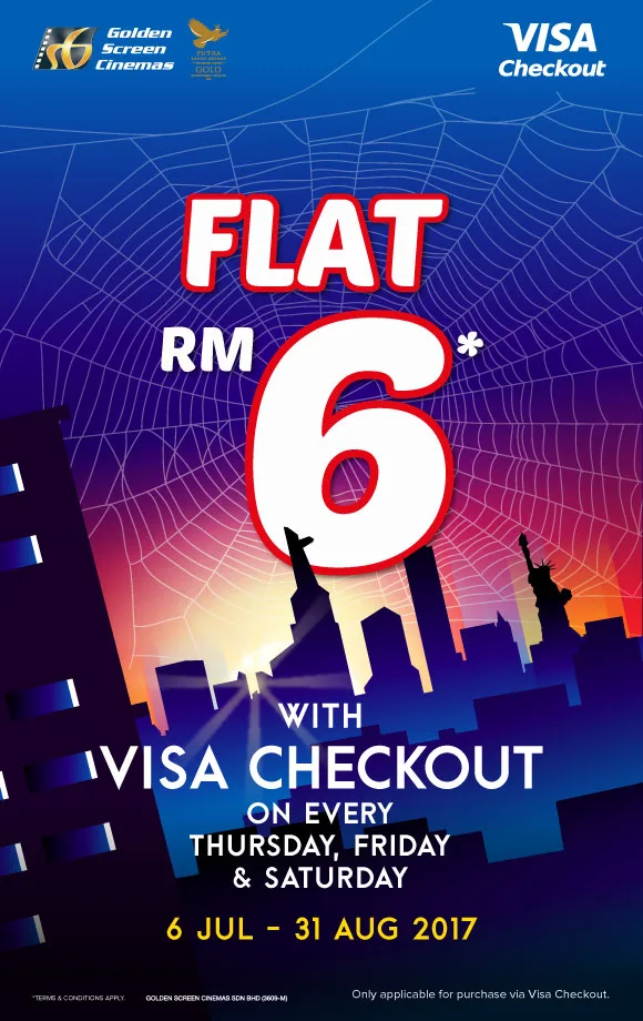 Anda boleh mendapatkan harga murah ini dengan pembelian di laman sesawang GSC dan aplikasi telefon GSC sahaja. Harga serendh RM6 ini hanya boleh dibeli dengan pembayaran menggunakan kad Debitatau kredit Visa bermula 6 Julai 2017 hingga 31 Ogos 2017. Jimat bukan? Jadi hujung minggu ini boleh ramai-ramai tengok wayang bersama keluarga.