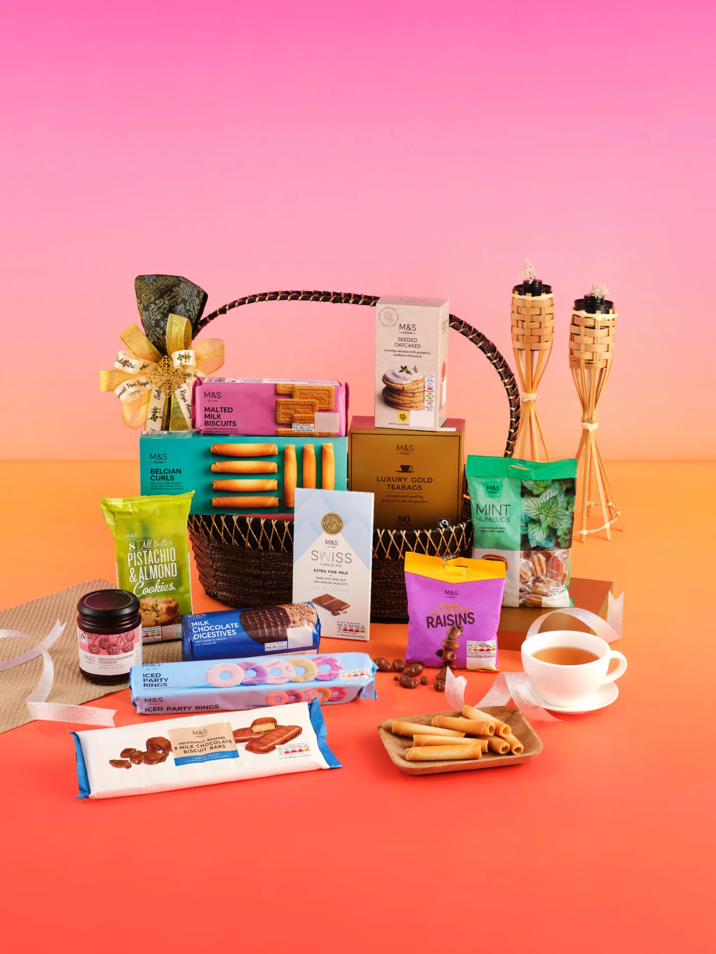 M&S menawarkan set hamper yang dipilih susun khas dengan pelbagai item kegemaran ramai. Para pembeli boleh pilih antara 7 pilihan hamper, seperti Festive Treat, Raya Selection, Fancy Treats, Luxurious Selections, Extravagant Selections, Lavish Indulgence (dalam gambar) dan Delightful Opulence. Hamper ini berharga antara RM199 dan RM999.