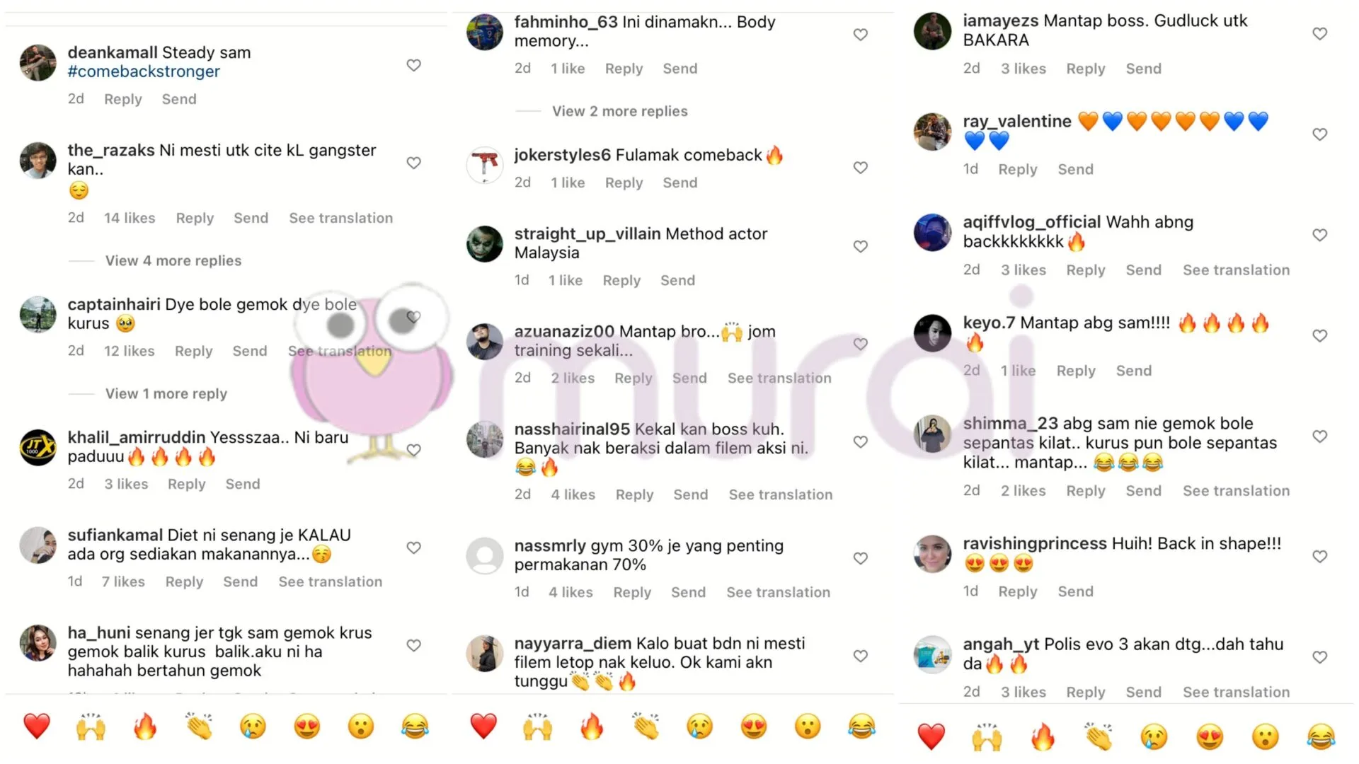 Tinjauan Murai MY di ruangan komen mendapati rata-rata peminat meluahkan rasa teruja melihat transformasi Sam yang berjaya menurukan berat badan selepas memilik tubuh yang agak gempal sebelum ini.
