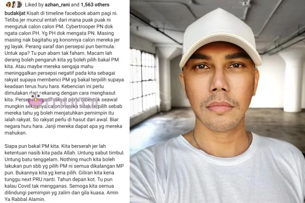“Kisah di timelime Facebook abam pagi ni. Tetiba jer muncul entah dari mana puak-puak ni mengutuk calon-calon PM. Cybertrooper PN dok ngata calon PH.