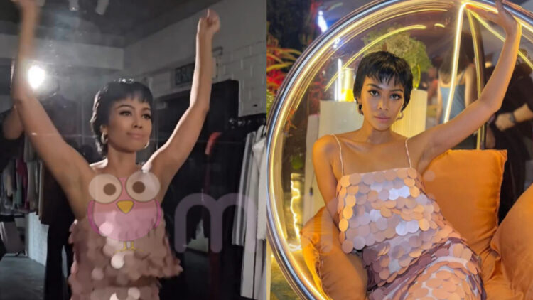 Terkini, Sakinah menerusi hantaran di Instagram dilihat menggayakan circle sequin dress berwarna merah jambu rekaan pereka Afiq M ketika menghadiri sebuah acara pelancaran produk kecantikan dari Perancis.