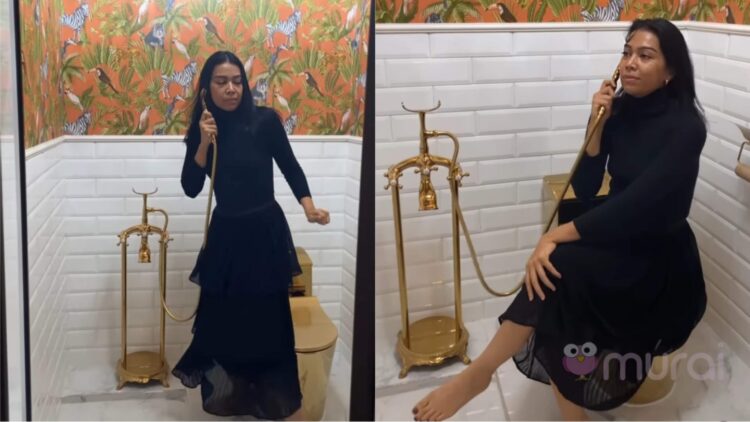 Pelakon, Sharifah Sakinah kembali dikecam netizen selepas memuatnaik video yang menampakkan hiasan mewah yang bertemakan keemasan pada sebuah tandas.