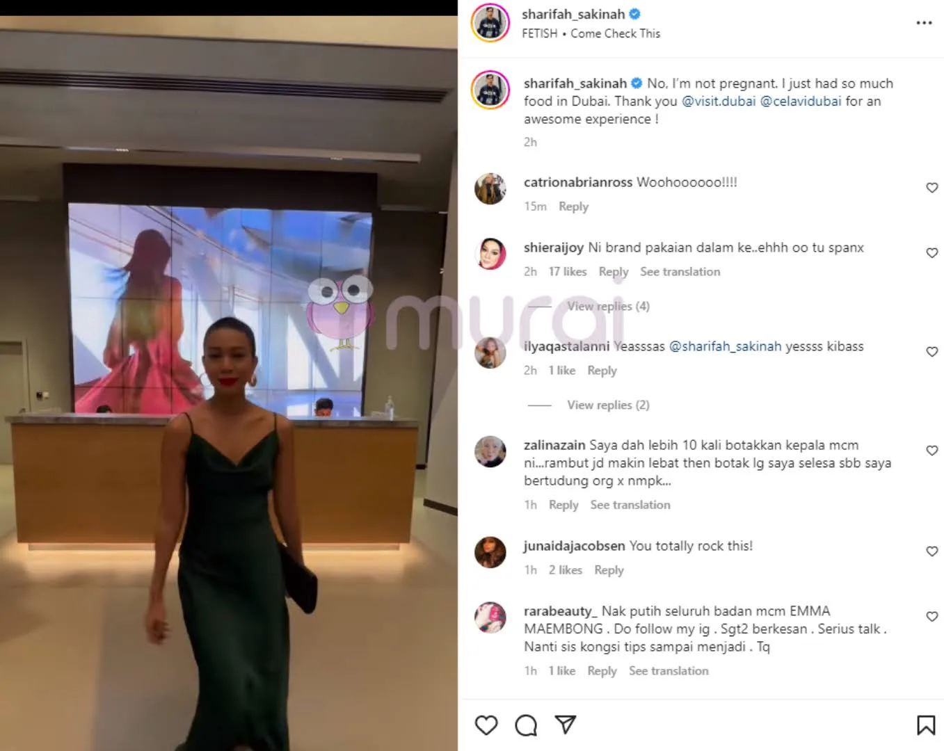“Tidak, saya tidak hamil. Saya hanya terlalu banyak makan di Dubai.”-Jelas Sakinah