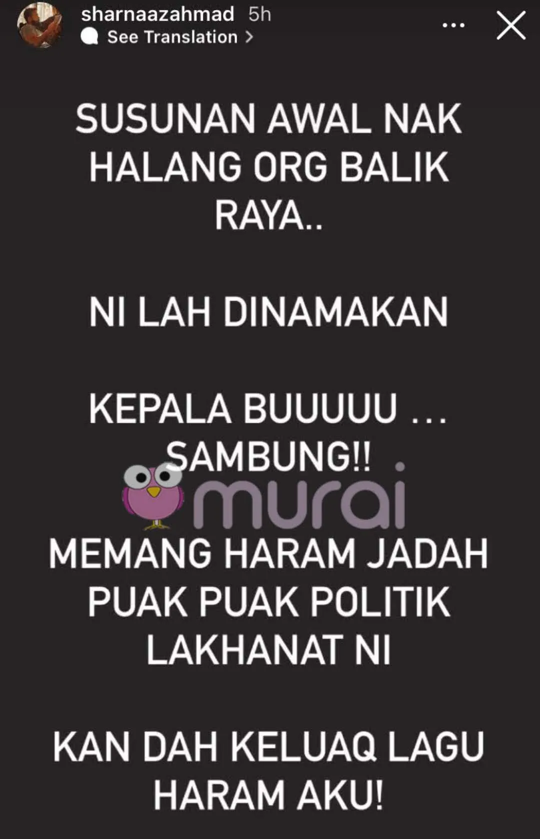 Tambah Sharnaaz lagi, dia menyifatkan isu tersebut sebagai langkah awal untuk menghalang umat Islam pulang ke kampung untuk merayakan Aidilfitri kelak.