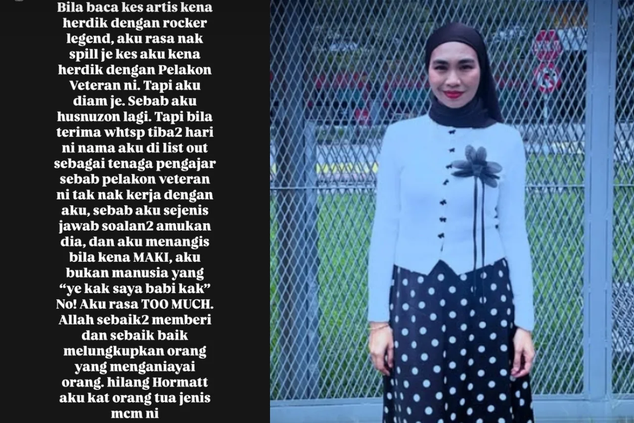 “Bila baca kes artis kena herdik dengan rocker legend, aku rasa nak spill je kes aku kena herdik dengan pelakon veteran ni. Tapi aku diam je. Sebab aku husnuzon lagi.”