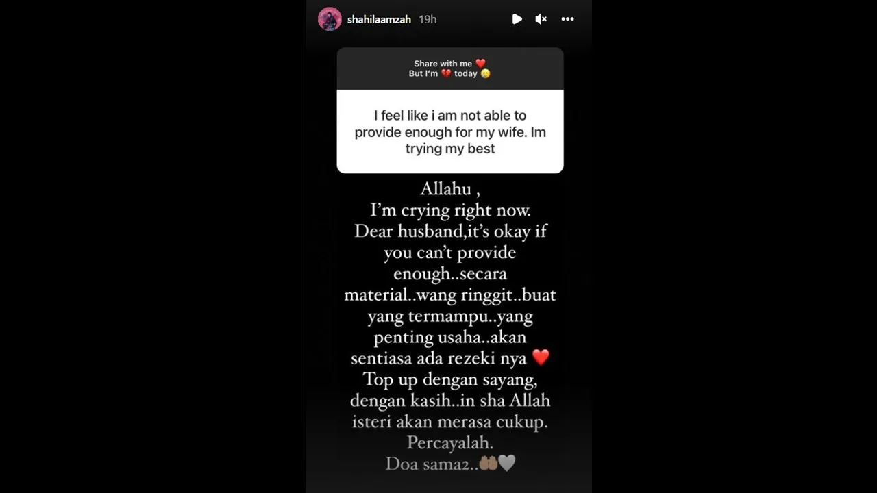 Perkongsian yang telah dikongsikan oleh netizen itu turut mendapat respon dari Shila. Dia turut memberi pesanan kepada para suami supaya memberikan apa yang termampu dan yang penting sentiasa berusaha.