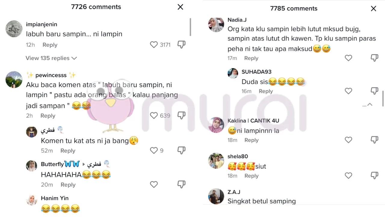 “Aku baca komen atas, labuh baru sampin, ni lampin, pastu ada org balas, kalau panjang jadi sampan.”-tambah mereka