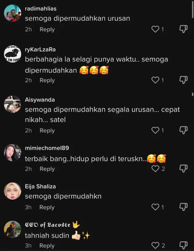 Di ruangan komen video tersebut, dipenuhi dengan doa dari peminat shuib agar dipercepatkan dan dipermudahkan urusan majlisnya nanti.
