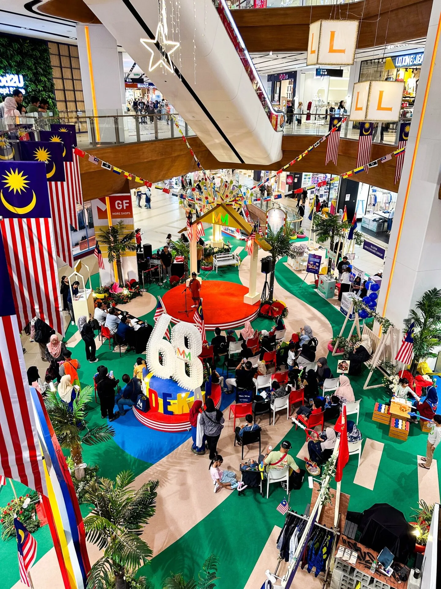 Dekorasi “Lestari Merdeka” yang dihiasi bahan kitar semula menjadikan mall ini bukan sahaja tempat berbelanja, tetapi ruang mendidik kita tentang tanggungjawab menjaga bumi. Cinta tanah air bukan sekadar kibarkan bendera, tetapi juga bagaimana kita pelihara bumi yang jadi rumah Malaysia.