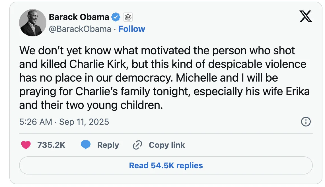 Selepas tragedi tu, satu Amerika tergoncang. Trump umum bendera separuh tiang, siap marah “radikal kiri” yang dituduh jadi punca budaya benci. Dari Obama, Netanyahu sampailah ke orang kanan Putin, semuanya bagi reaksi.