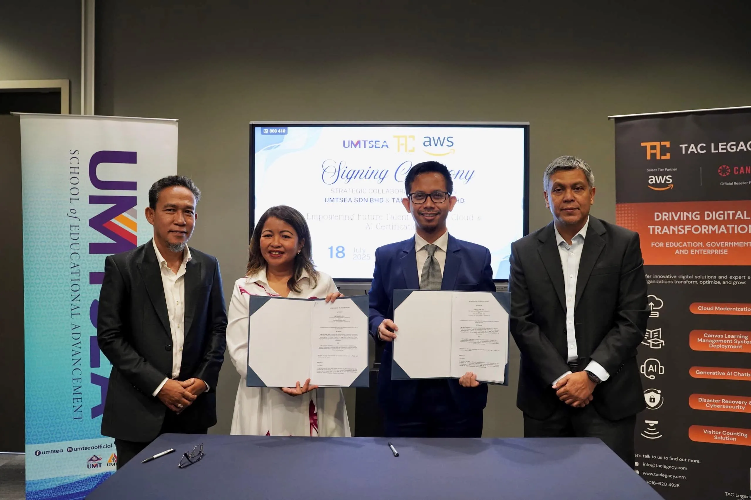 Dalam pada itu, UMTSEA Sdn. Bhd., anak syarikat milik penuh UMT Holdings, telah menandatangani memorandum persefahaman dengan TAC Legacy Sdn. Bhd. untuk melaksanakan program ini. TAC Legacy akan bertanggungjawab menyediakan latihan melalui kerjasama dengan badan pensijilan antarabangsa termasuk Amazon Web Services (AWS), manakala UMTSEA akan menguruskan promosi, pengambilan peserta dan bekerjasama dengan pihak akademik serta industri.