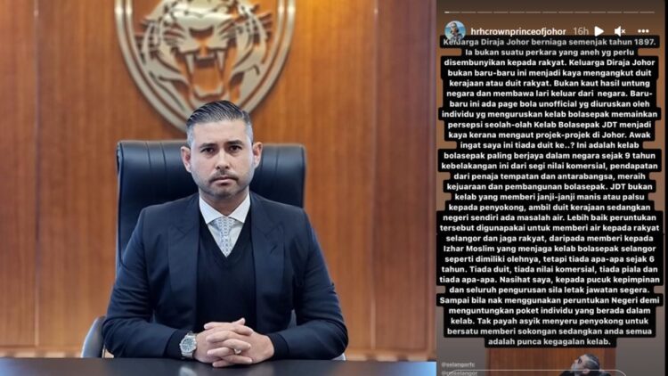 Menurut perkongsian di Instagram Story, baginda menyatakan ada pihak yang mendakwa seolah-olah Kelab Bola Sepak JDT menjadi kaya kerana mengaut projek-projek yang terdapat di Johor.