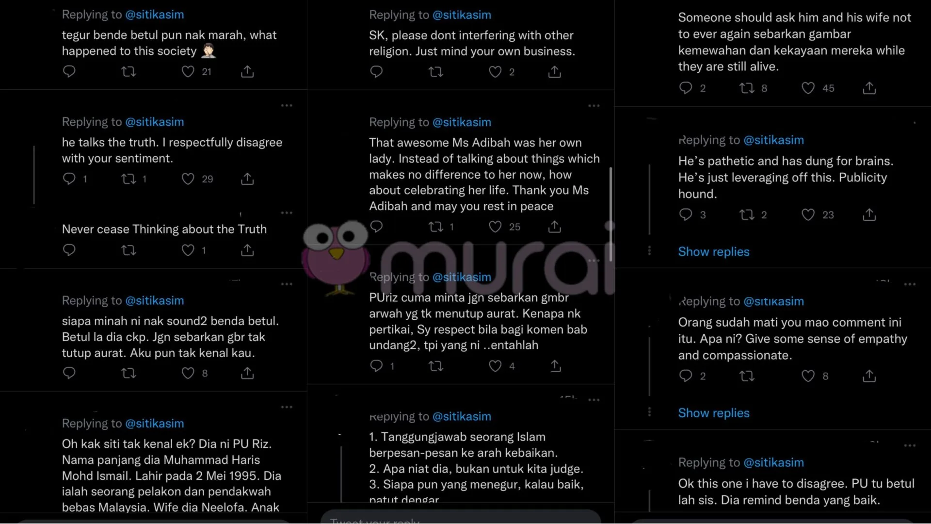 Tinjauan Murai MY di ciapan Siti Kasim, terdapat netizen yang berpendapat teguran PU Riz itu adalah satu perkara yang betul untuk dilakukan, dalam pada itu, ada yang turut bersetuju dengan pendapat Siti Kasim.