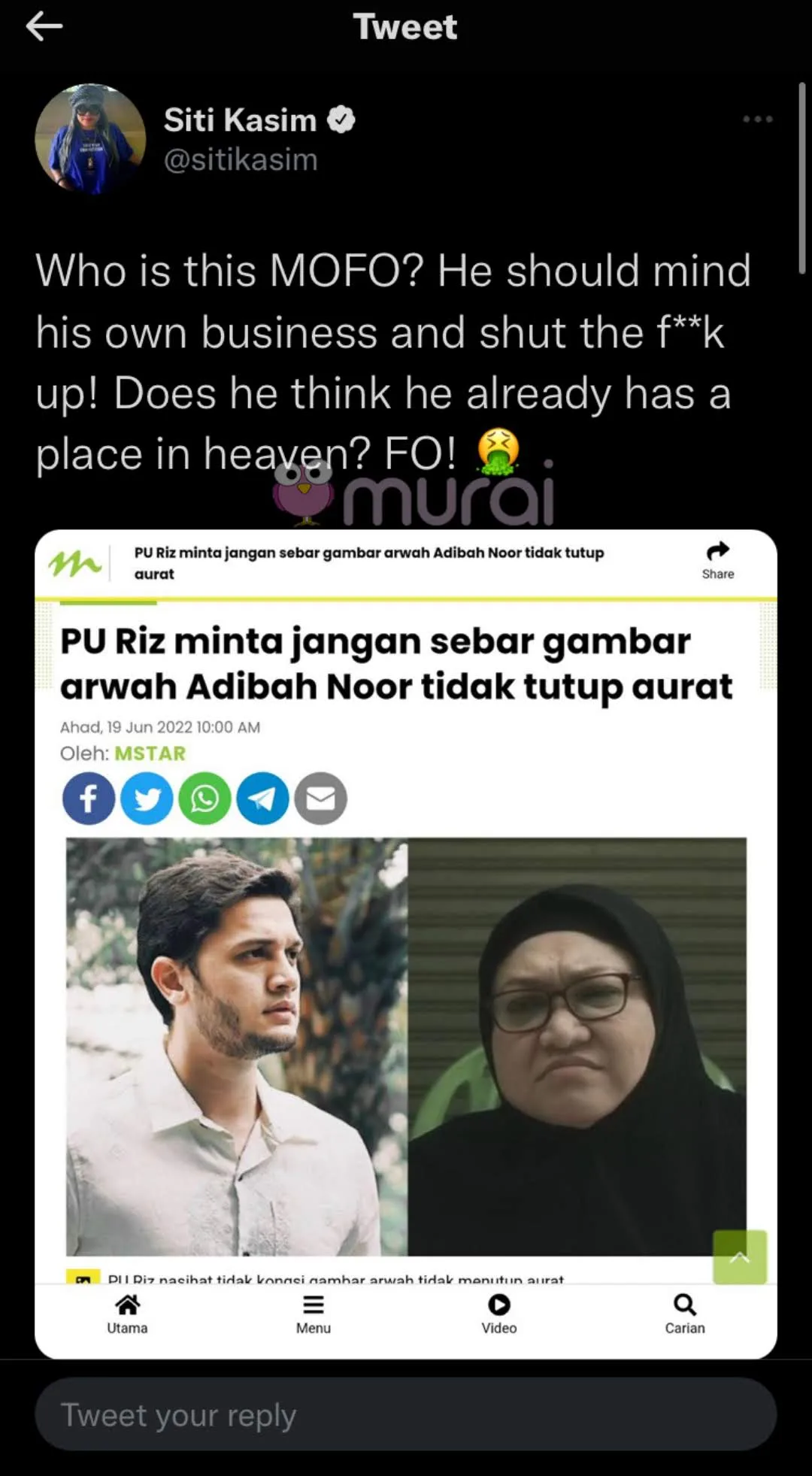 “Who is this MOFO? Dia seharusnya memikirkan urusannya sendiri dan tutup mulut! Adakah dia fikir dia sudah mendapat tempat di syurga? FO.”- Coret Siti Kasim