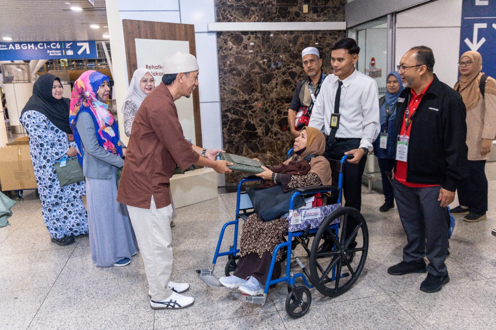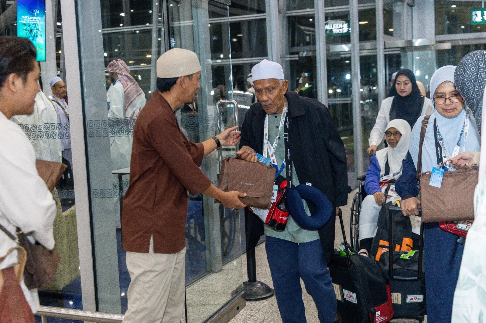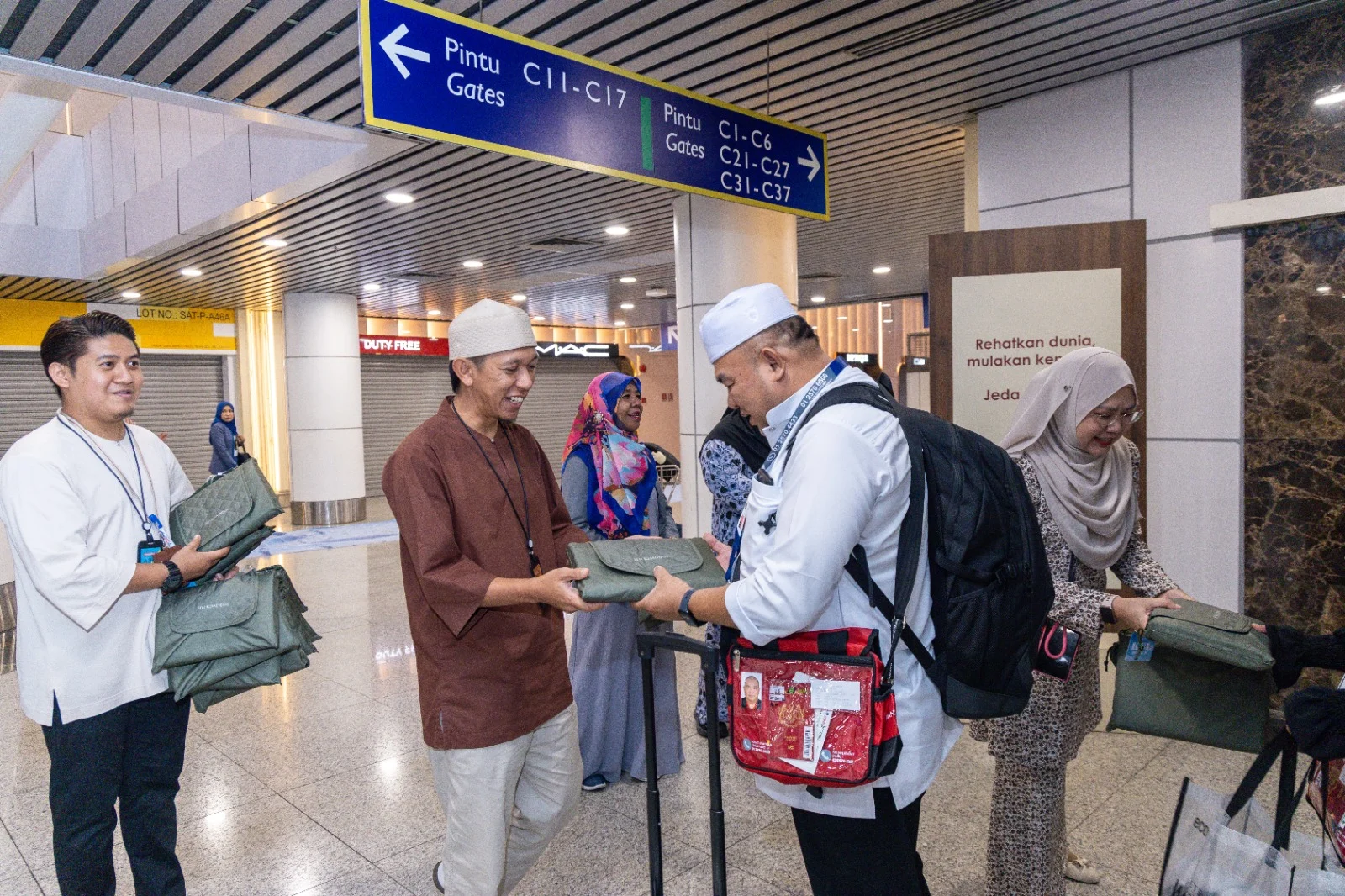 Dalam suasana penuh bermakna itu, Siti Khadijah meraikan para jemaah dengan penyampaian Kit Haji di pintu pelepasan yang diketuai oleh Mohammad Munzir Aminuddin, Ketua Pegawai Eksekutif Siti Khadijah dan Hazelin Ghaus, Pengurus Kanan, Pengurusan Pengalaman Pelanggan, MAHB. Aktiviti ini melibatkan jemaah yang melalui proses pelepasan di beberapa titik pertemuan termasuk kawasan pengumpulan sebelum proses pra-pelepasan di pintu C16 dan C17.