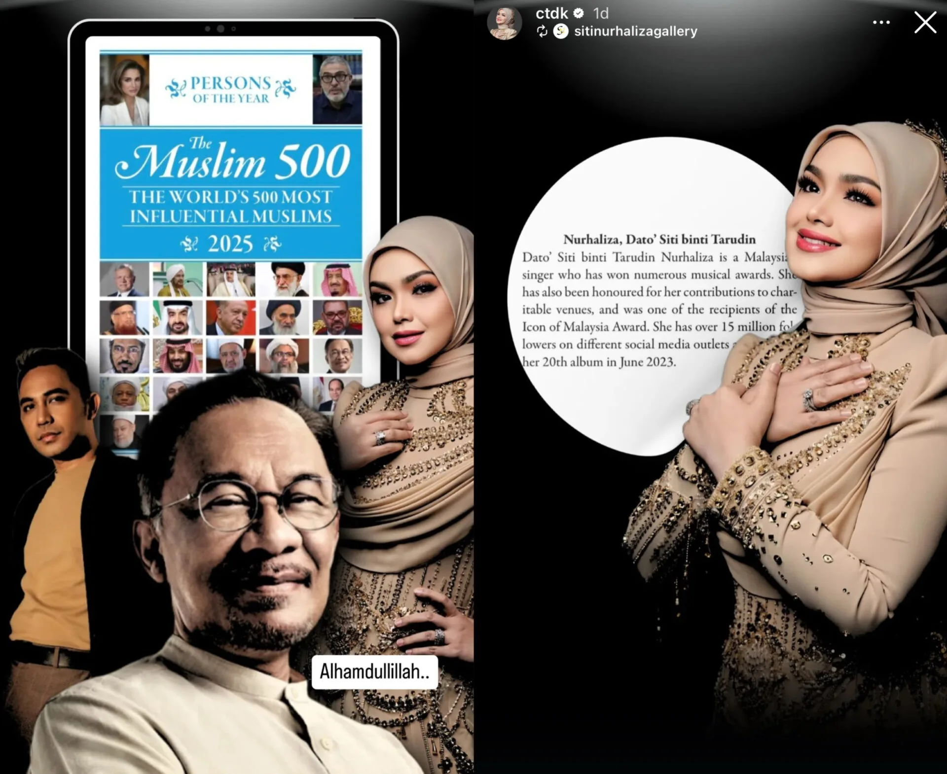 Penyanyi terkenal, Datuk Seri Siti Nurhaliza menitipkan rasa syukur apabila namanya tersenarai dalam The Muslim 500: The World’s 500 Most Influental Muslim edisi 2025.