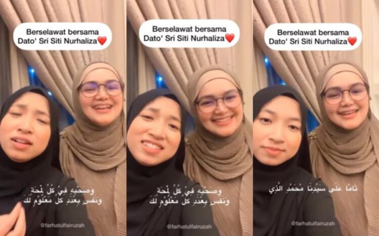 Juara Pertandingan Tilawah Al-Quran Antarabangsa 2019, Farhatul Fairuzah yang berkongsi video mengalunkan selawat bersama penyanyi tersohor, Datuk Seri Siti Nurhaliza mencuri tumpuan netizen.
