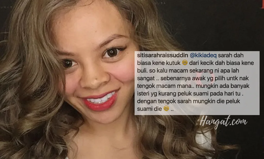 Sarah dah biasa kena kutuk, dari kecil dah biasa kena buli. Jadi kalau macam sekarang ni apa lah sangat, sebenarnya awak yg pilih untuk nak tengok macam mana. Mungkin ada banyak isteri yang kurang peluk suami pada hari tu . Dengan tengok sarah mungkin die peluk suami dia.