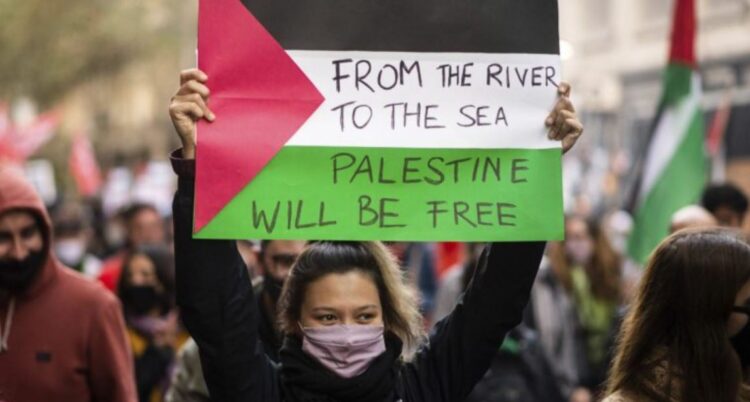Slogan ‘From The River To The Sea’ sering dilaungkan oleh orang ramai sebagai tanda bersolidariti bersama Palestin.