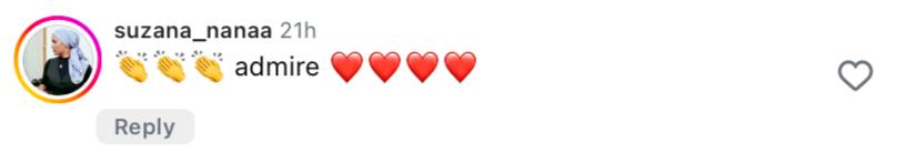 Ramai yang terinspirasi dengan pendekatan “slowly but surely” yang diamalkannya, selain menghargai mesej bahawa menjaga badan bukan soal kurus semata-mata, tetapi tentang kesihatan, keyakinan dan kebahagiaan diri.