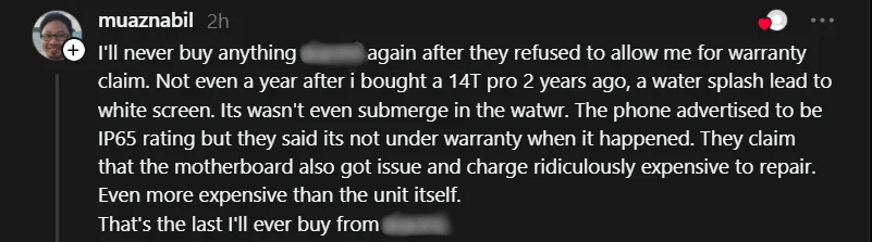 Tidak kurang juga yang berkongsi pengalaman berdepan kesukaran tuntutan waranti bagi produk elektronik lain, sekali gus membangkitkan isu kejelasan polisi waranti dan perlindungan pengguna.
