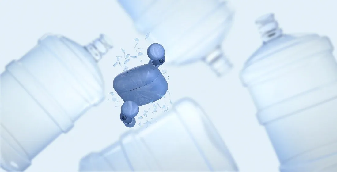LinkBuds S sesuai dengan warna “Earth Blue” yang menggunakan bahan damar kitar semula yang dihasilkan daripada botol air kitar semula. Bahagian badan dan bekas LinkBuds S dalam Earth Blue diperbuat daripada bahan botol air kitar semula yang menghasilkan corak marmar yang unik. Ia pada asalnya dibangunkan oleh Sony untuk mengejar ekspresi reka bentuk baharu dengan tujuan mengembangkan potensi penggunaan bahan kitar semula daripada botol pelayan air.