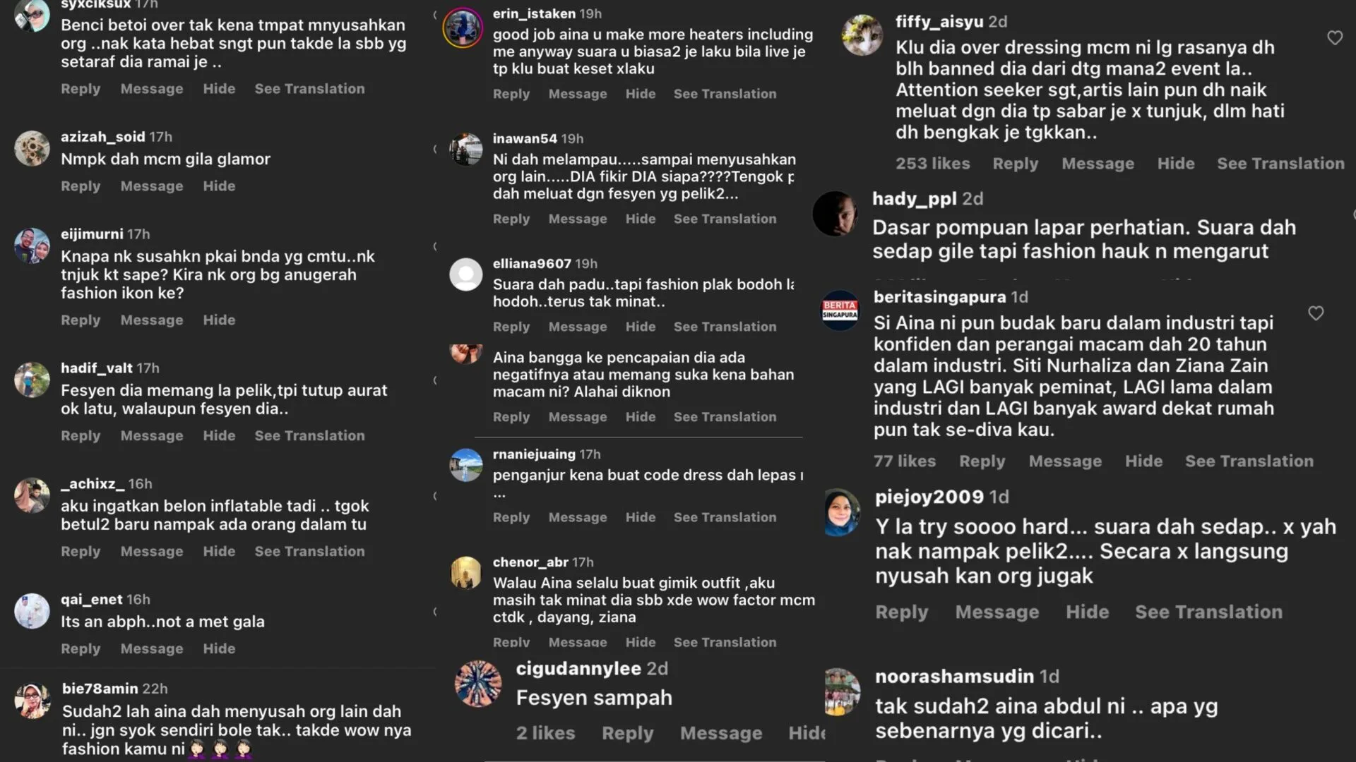 “Walau Aina selalu buat gimik outfit, aku masih tak minat dia sebab takde wow factor macam ctdk, Dayang, Ziana”