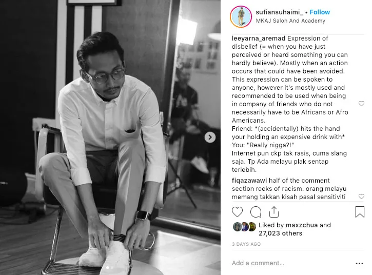Kuasa netizen mengecam teruk, penyanyi ini telah meng’edit’ kapsyen pada gambar tersebut. Ingatkan isu ini berakhir rupanya belum lagi dimana netizen masih lagi memarahi dan mengecam Sufian. Dimana permohonan maaf atas kesalahan menggunakan perkataan itu. Nampak seperti ingin lepas tangan.