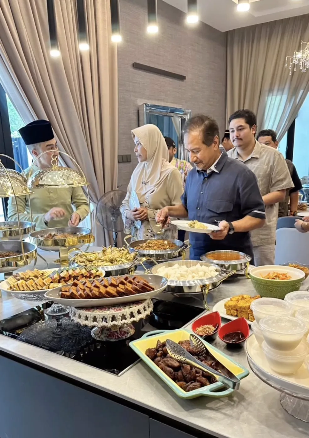 “Truly humbled & honored dapat menyambut keberangkatan tiba KDYMM Tuanku Al-Sultan Mizan Zainal Abidin, KDYMM Sultanah Nur Zahirah, KDYTM Yang DiPertuan Muda Terengganu, YAM Tengku Puteri Utama Raja, YBhg. Datuk Wira Sheikh Abd. Halim & Waleed yang dikasihi untuk bersama beraya di teratak Patik”- tulisnya di Instagram