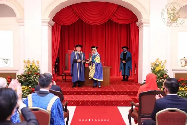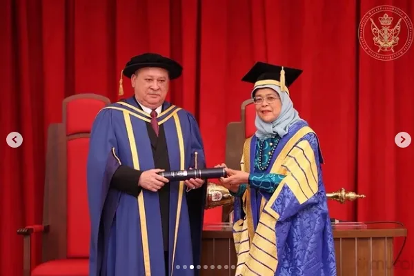 Melihat entri yang ditulis baginda, majlis berprestij tersebut disempurnakan oleh Presiden Singapura, Puan Yang Terutama Halimah Yaacob yang juga merupakan Canselor NUS.