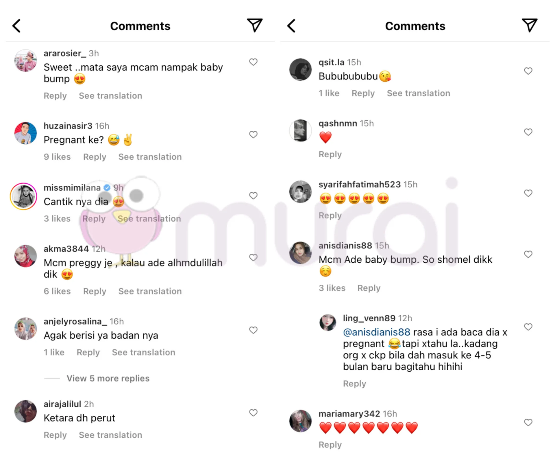 “Rasa i ada baca dia tak pregnant. Tapi tak tahu la. Kadang orang tak cakap bila dah masuk ke 4-5 bulan baru bagitau hihi.”