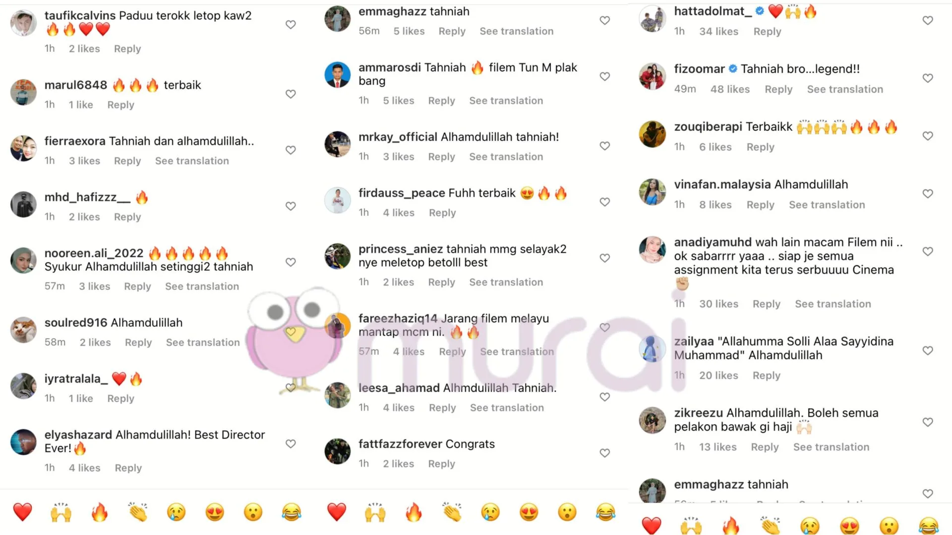 Di ruangan komen, rata-rata netizen dan rakan artis menitipkan ucapah tahniah di atas kejayaan filemnya yang berjaya mencecah kutipan lebih dari RM12 juta selepas 4 hari ditayangkan.