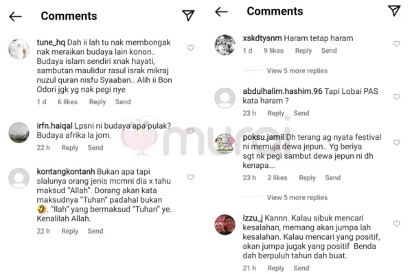 “Budaya Islam sendiri taknak hayati, sambut Maulidur Rasul, Israk Mikraj, Nuzul Al-Quran, Nisfu Syaaban. Alih alih Bon Odori juga yang nak pergi nya.” Komen warganet
