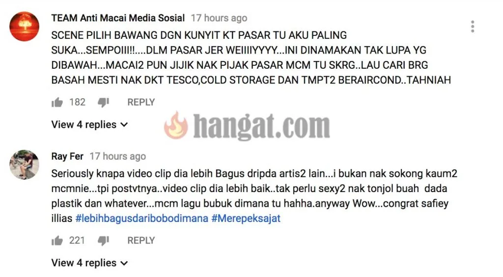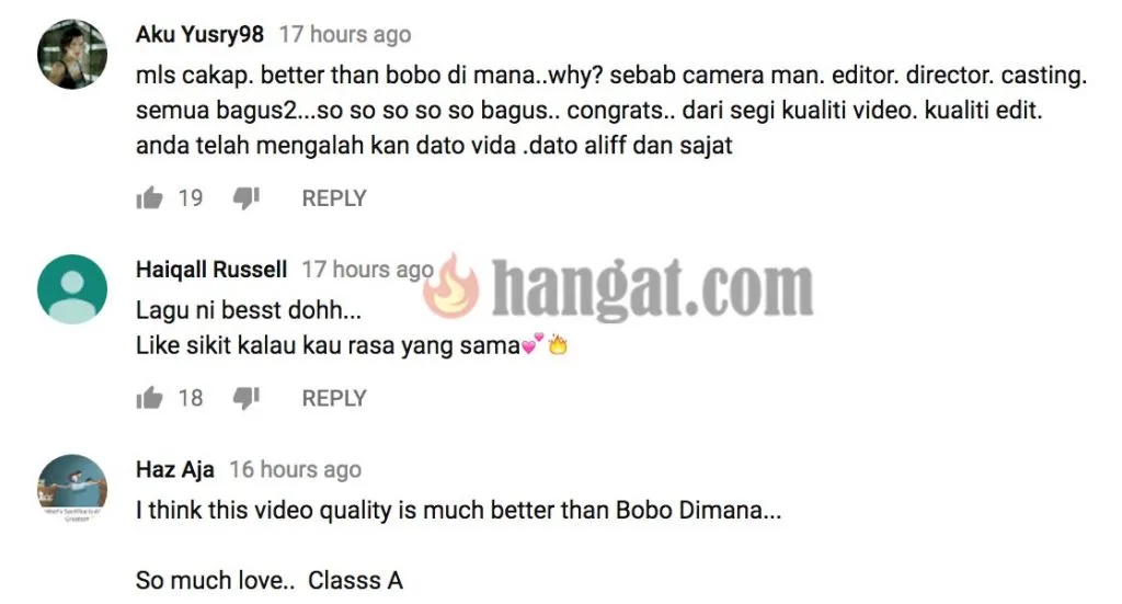 Lagu ini telah mendapat 36,000 views di Youtube kurang dari 17jam. Berikut antara komen-komen positif dari pendengar di ruangan komen .