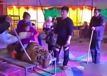 Hakikatnya ini adalah sarkas yang paling menyedihkan di dunia di mana pelawat dibenarkan untuk mengambil gambar menunggang harimau ketika tangan ...