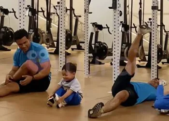 Gelagat anak kepada pelakon, Remy Ishak dan isteri, Ezza Yusof iaitu Tuah Alam yang menemani bapanya bersenam di gimnasium mencuit ...