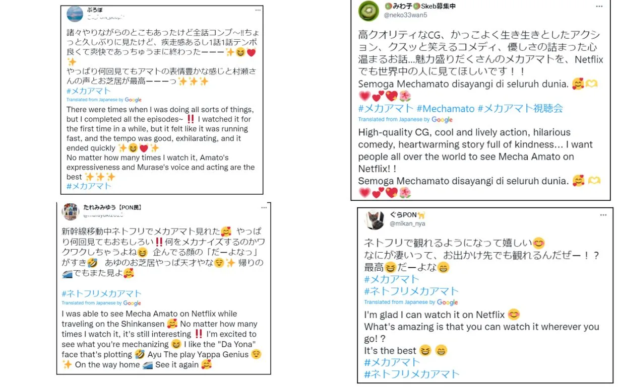 Di laman media sosial antarabangsa ‘Twitter’, para peminat negara matahari terbit itu tidak berputus memuat naik komen-komen yang rata-ratanya memuji dan memberikan reaksi serta pandangan positif dengan menggunakan tanda palang #メカアマト
