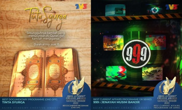 Tahniah kepada penerbitan krew Tinta Syurga (TV3), 999 ‘Jenayah Banjir’ (TV3) dan ‘My Dream, My Wish’ (8TV) yang berjaya mewakili Malaysia pada peringkat nasional Asian Academy Creative Awards (AACA) 2022.