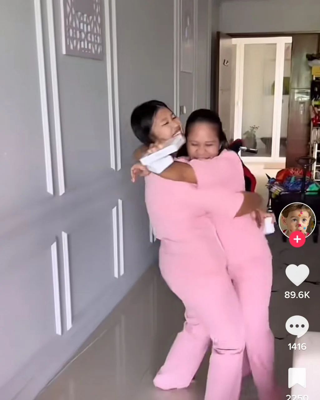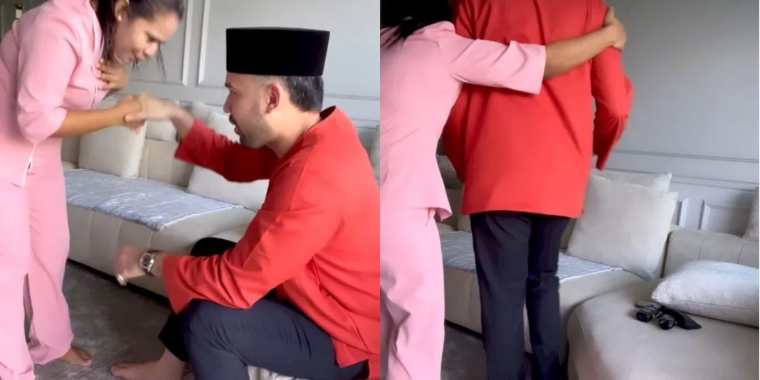 Dalam pada itu, reaksi kedua-dua pembantu rumah itu cukup teruja dan seronok sehingga memeluk pasangan suami isteri itu sebagai tanda menghargai dengan pemberian hadiah tersebut malah mereka turut mencium anak pasangan itu, Shariq Gabriel.