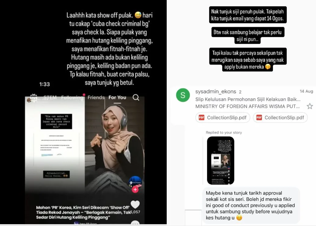 Nama Kim Seri sekali lagi jadi sebutan hangat netizen apabila pempengaruh kontroversi itu memuat naik Certificate of Good Conduct (Sijil Kelakuan Baik) dari Kerajaan Malaysia di Instagram Story.
