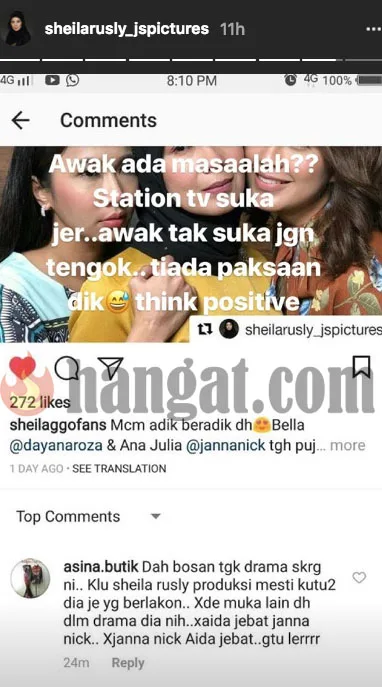Nampaknya pelakon dan pengarah Sheila Rusly tak terkecuali menjadi mangsa kecaman  para netizen melalui Instagram miliknya.