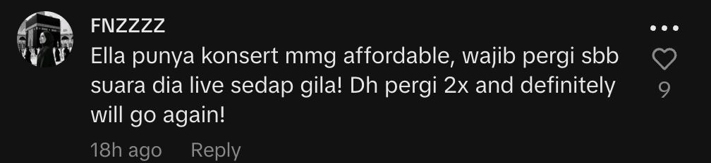 “Ella punya konsert memang mampu milik, wajib pergi sebab suara dia live sedap gila. Dah pergi dua kali dan sememang akan pergi lagi,” tulis seorang peminat yang jelas sudah ‘graduate’ sebagai kaki konsert Ratu Rock itu.