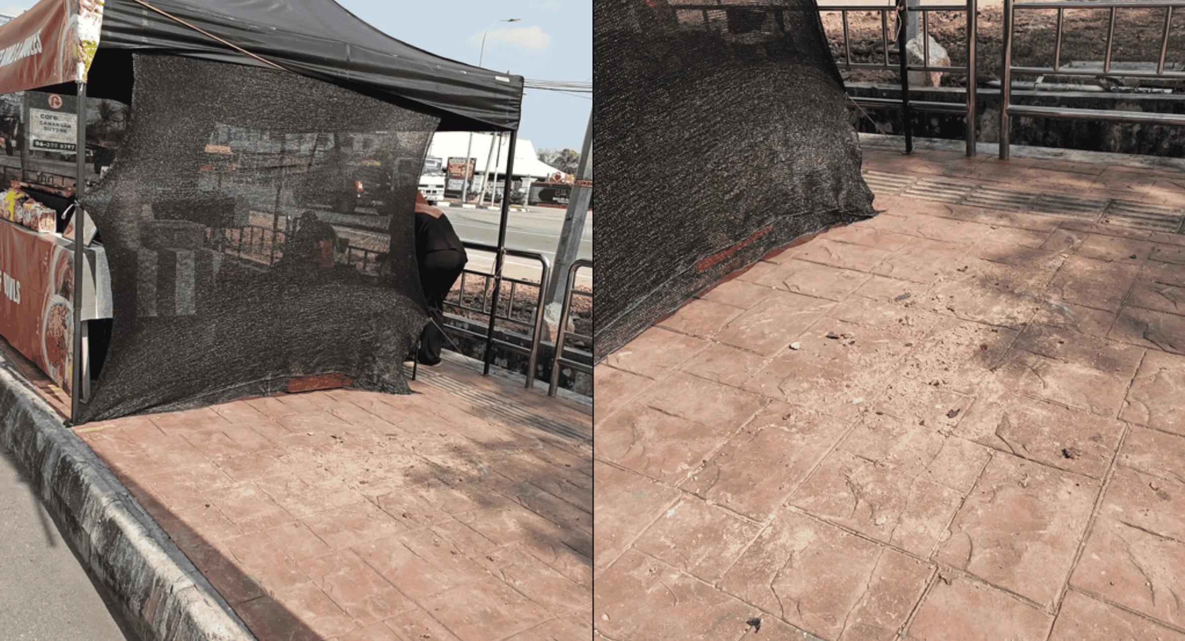 Tular di media sosial, satu perkongsian memaparkan situasi kurang menyenangkan apabila sebuah khemah perniagaan didirikan di atas laluan pejalan kaki. Lebih membimbangkan, kawasan tersebut dilihat mempunyai kesan kekotoran yang ‘di-claim’ sebagai tapak tetap oleh peniaga terbabit.