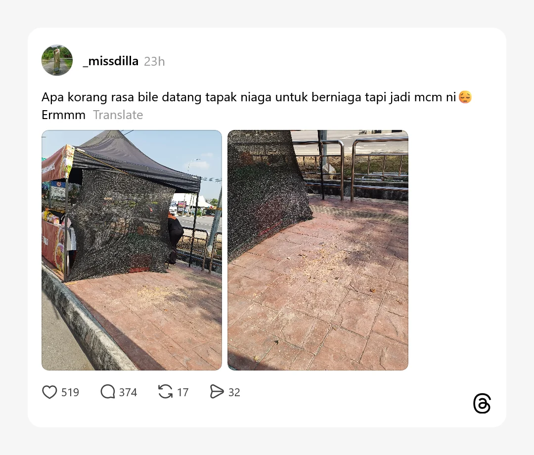 Meninjau di ruangan komen, rata-rata netizen turut mempersoalkan sama ada peniaga tersebut mempunyai kebenaran rasmi atau sekadar ‘menumpang’ ruang awam tanpa permit.